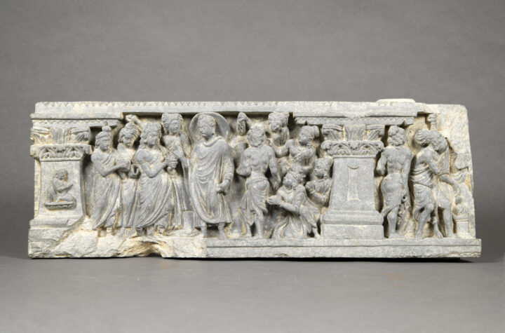 仏伝浮彫「三迦葉の帰仏」 ガンダーラ 2~3世紀 龍谷大学