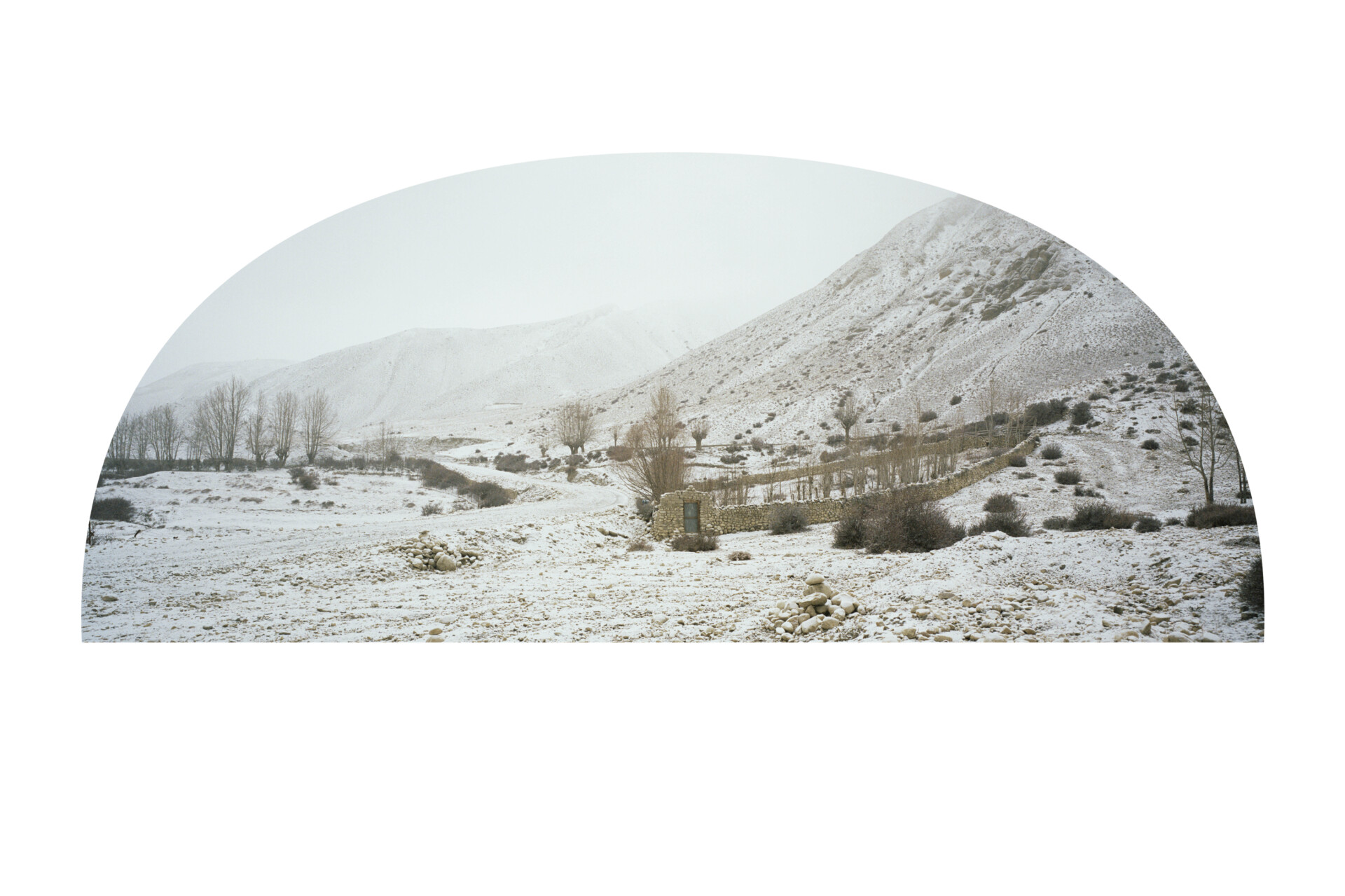 新シリーズ「LO」は、文化人類学者の誘いを受け、入域許可が必要なネパール北部ムスタン地方を冬季に訪れて撮影したもの。乾いた大地を渡る風、連なる山稜、風景に溶け込むように佇む仏塔、澄んだ空気の層など、旅の中で掬い上げられた光景を捉えている。