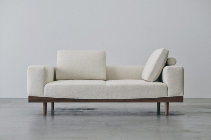 「CO-CRAFT」第一弾として発表されたのは、デザイナーの大城健作、鈴木 元と取り組んだ新作家具。大城健作による「TSUKI」コレクションは、厚みのある無垢材をふんだんに用い、木の存在感を生かしながらも生活に寄り添う造形を目指した。座面下部のカーブが三日月を思わせることから「TSUKI」と名付けられている。職人の技や感覚を家具のかたちに落とし込むことをポイントに、カンナ跡や木口の仕上げなど手仕事の痕跡をデザインに変換。「TSUKI CHAIR」は狭小空間でも使いやすいサイズ感を、「TSUKI SOFA」は床座と椅子座が融合する日本ならではのくつろぎ方を意識している。