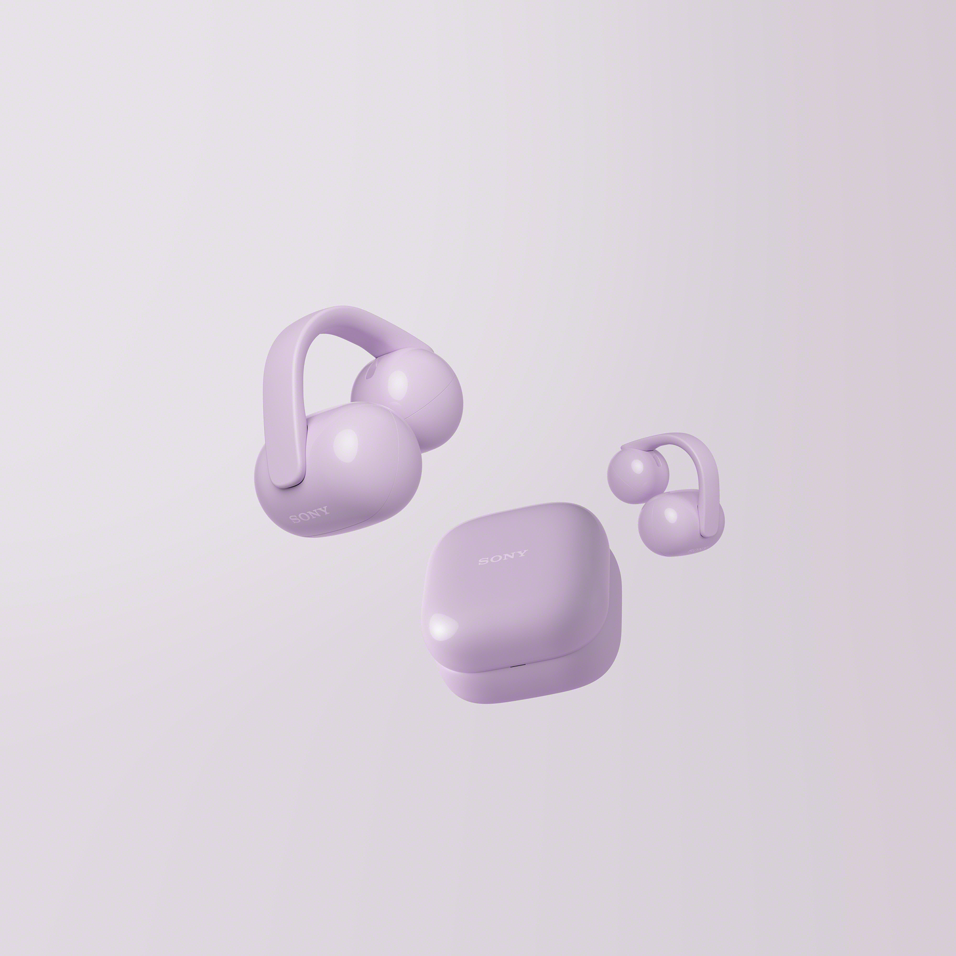 イヤーカフから着想を得たデザインは、軽量で安定した装着感を実現。付属のフィッティングクッションで装着感を調整できる。カラーはラベンダー、グレージュ、グリーン、ブラックの4色展開で、別売りのケースカバーによるカスタマイズも可能。