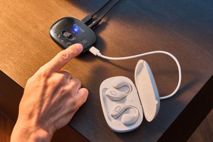加えて、テレビ用トランスミッターのcocoe Linkと組み合わせることで、テレビ音声をワイヤレスで直接受信するといった使い方も可能である。cocoe Linkは、テレビのイヤフォン端子と有線でつないでも、また、それ自体が持つ集音マイクを使ってテレビの近くに置くだけでも機能させることができる。聞こえに衰えのない家族と同じテレビのボリューム設定でも、自分に適した音量で楽しめる点は、家庭内でのストレス軽減にもつながるはずだ。