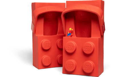 「レゴブロッククロッグ」はレゴのブロック美学をフットウェアに落とし込んだ設計だ。オーバーサイズのサンダルの上面にはレゴロゴを刻印した4つのスタッドを配置し、ソールもブロック状の独自デザインを採用した。コレクタブルアイテムとして、レゴミニフィギュア1体と小型クロックスシューズ4足が付属する。価格は$149.99 / £199.99 / €199.99。
