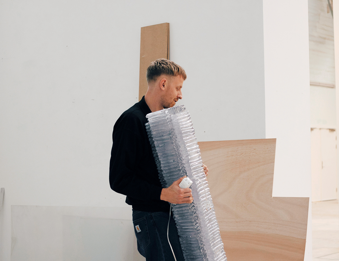 2024年の3daysofdesignで「クラフティング・プラスチック」と題した個展を開催し、一気に注目を集めたキャスパー・クスター。透明なプラスチック板を巻いたり曲げたりして、ハンドメイドした家具シリーズはSNSで話題となり、そのビジュアルは瞬く間に世界中を駆け巡った。