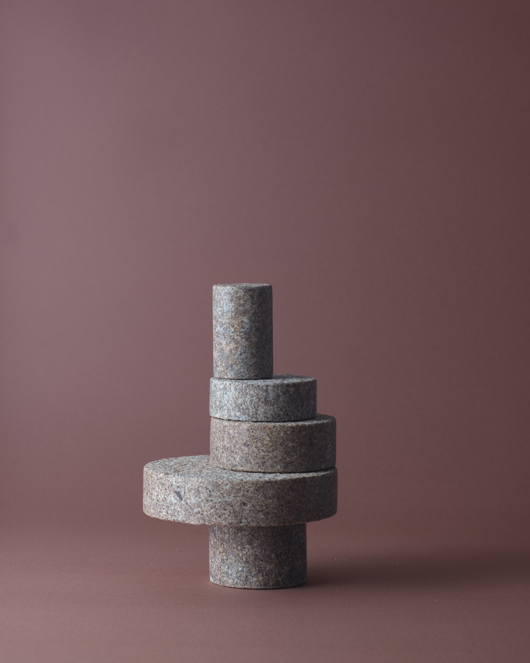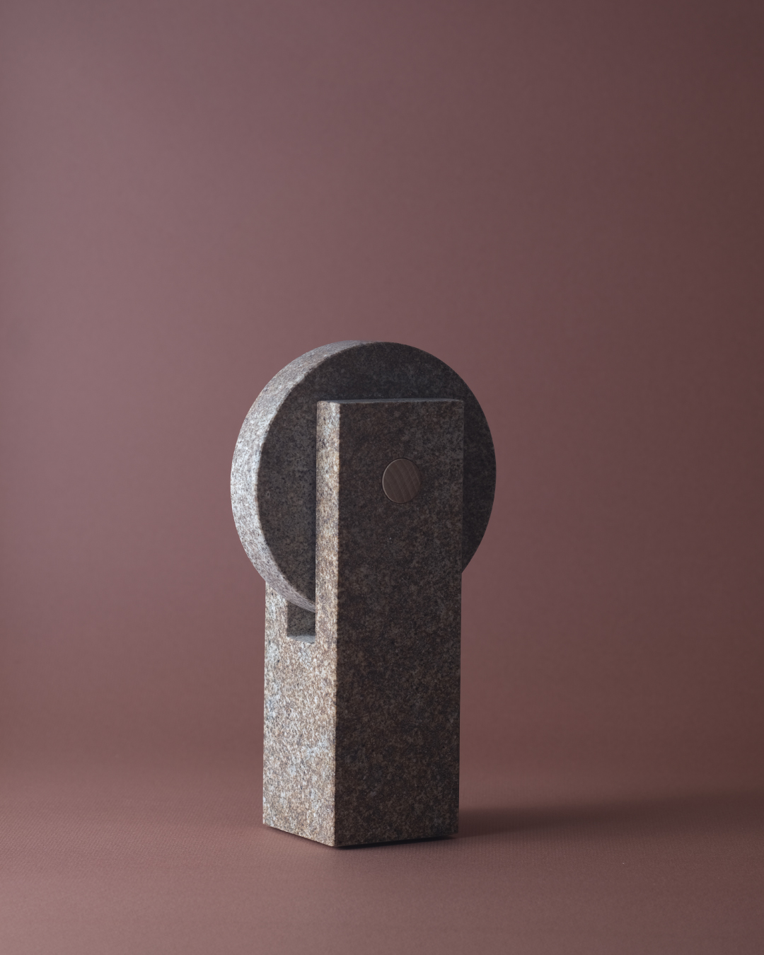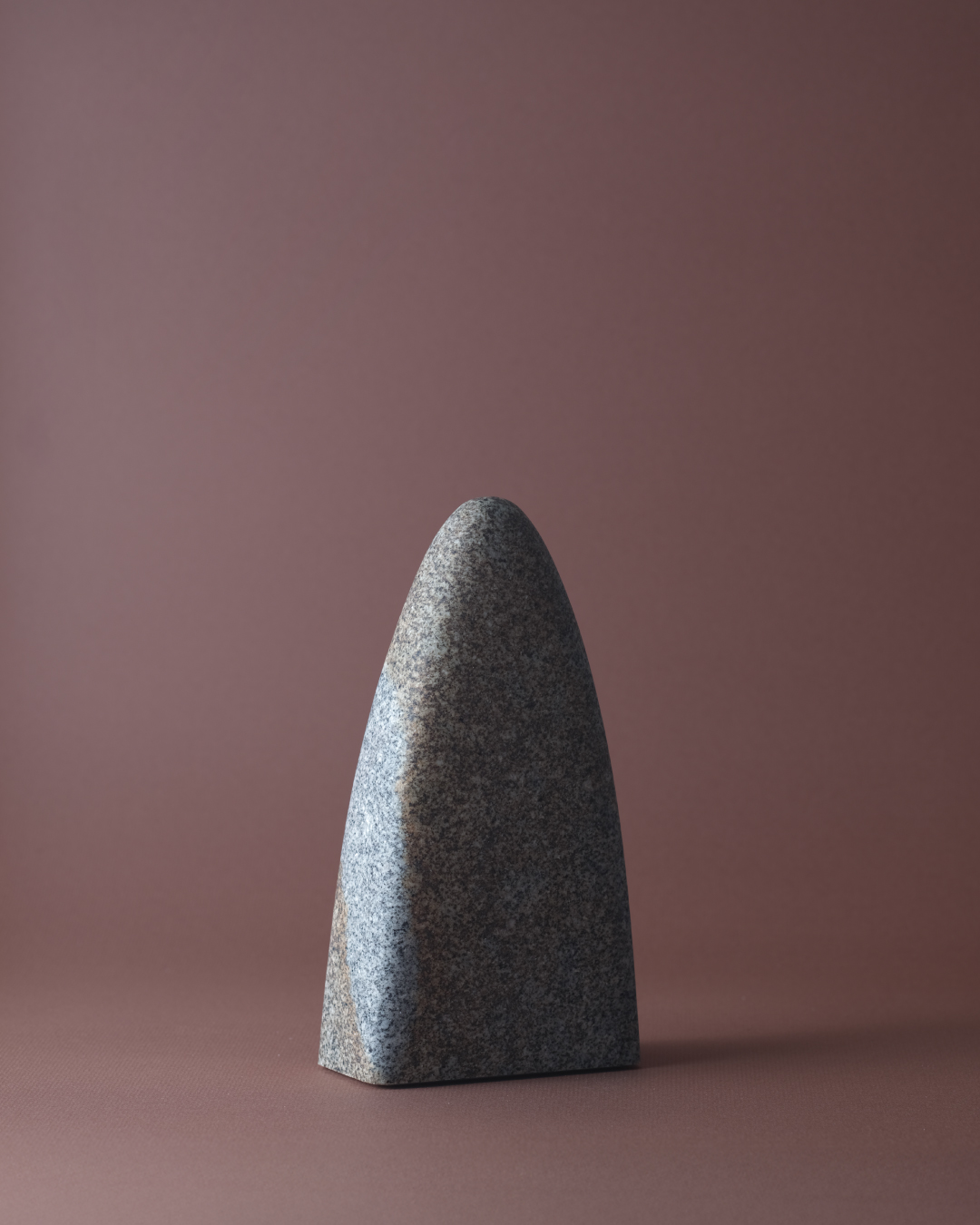 Reposeの素材となる庵治石は、日本を代表する花崗岩のひとつ。きめ細かく緻密な石質と、光を受けて浮かび上がる独特の斑模様を特徴とし、古くから墓石や石造物に用いられてきた。庵治石は「つくる石」ではなく「向き合う石」として扱われてきた素材でもある。そこには、石に宿る時間や役割を尊重する文化があり、日本の祈りや記憶を静かに支えてきた歴史がある。