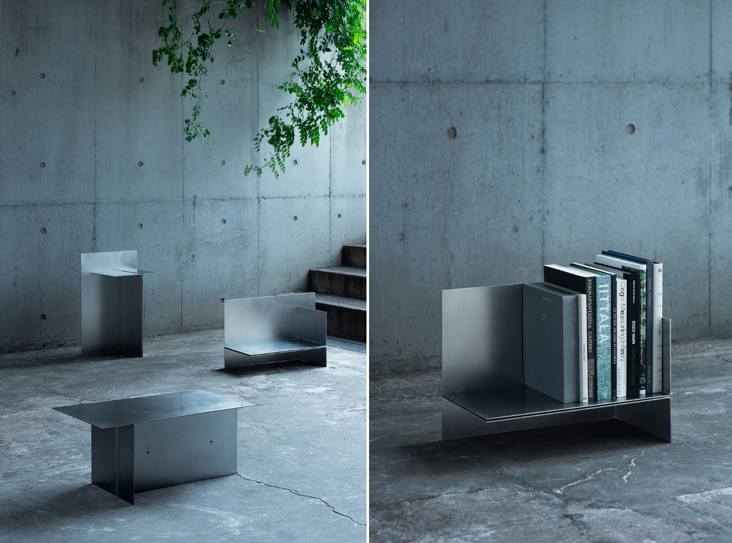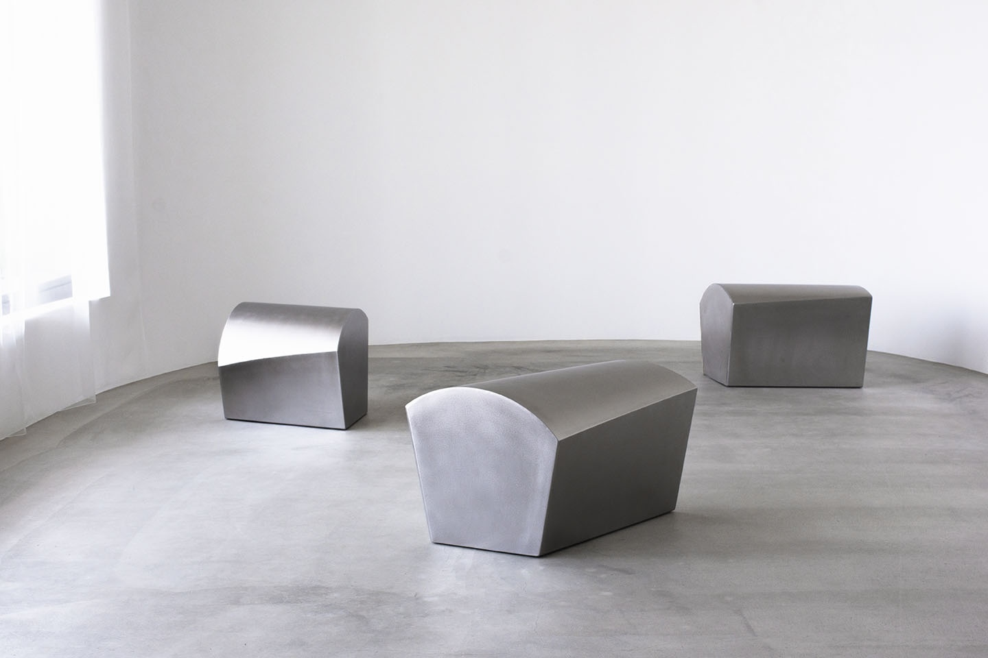 「es quart」での日本での初個展の出会いを契機に生まれたプロジェクトのひとつが、ニュウマン高輪内にあるクッポグラフィー高輪スタジオのために制作した家具「Presence」だ。狭小ながらも、やわらかな自然光が差し込み、コンクリートの床とステンレスの家具の色調が美しく調和する空間が実現。クッポグラフィー代表の久保真人や空間設計を手がけた a.d.pの坂田裕貴と、コンセプト段階から丁寧な対話を重ね制作を進めたという。