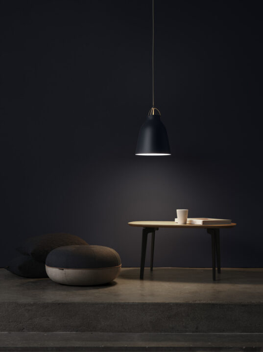 「当時まだほぼ無名のデザイナーだったセシリエ・マンツの『カラヴァッジオ』を見て、これはヒットするかもしれないと思ったんです。基本、器具のデザインで光をどう演出するか、あるいは光学的に制御し、いかにバランスよく空間に光を届けるか、この二点が照明器具の大まかなデザインの方向性だと思います。そのなかで『カラヴァッジオ』は、ほとんどフォルムしか感じないシンプルなデザインと、光が真下にポトンと落ちる上品な佇まいが強く印象に残りました。初期の『カラヴァッジオ』はハイグロスブラックをメインで取り扱っていたので、空間にブラックアウトしたフォルムが並ぶビジュアルはとても新鮮でしたね。シェードの色と異なったカラーケーブルを取り入れたりと、それまでにないクリーンな雰囲気が際立っていました」