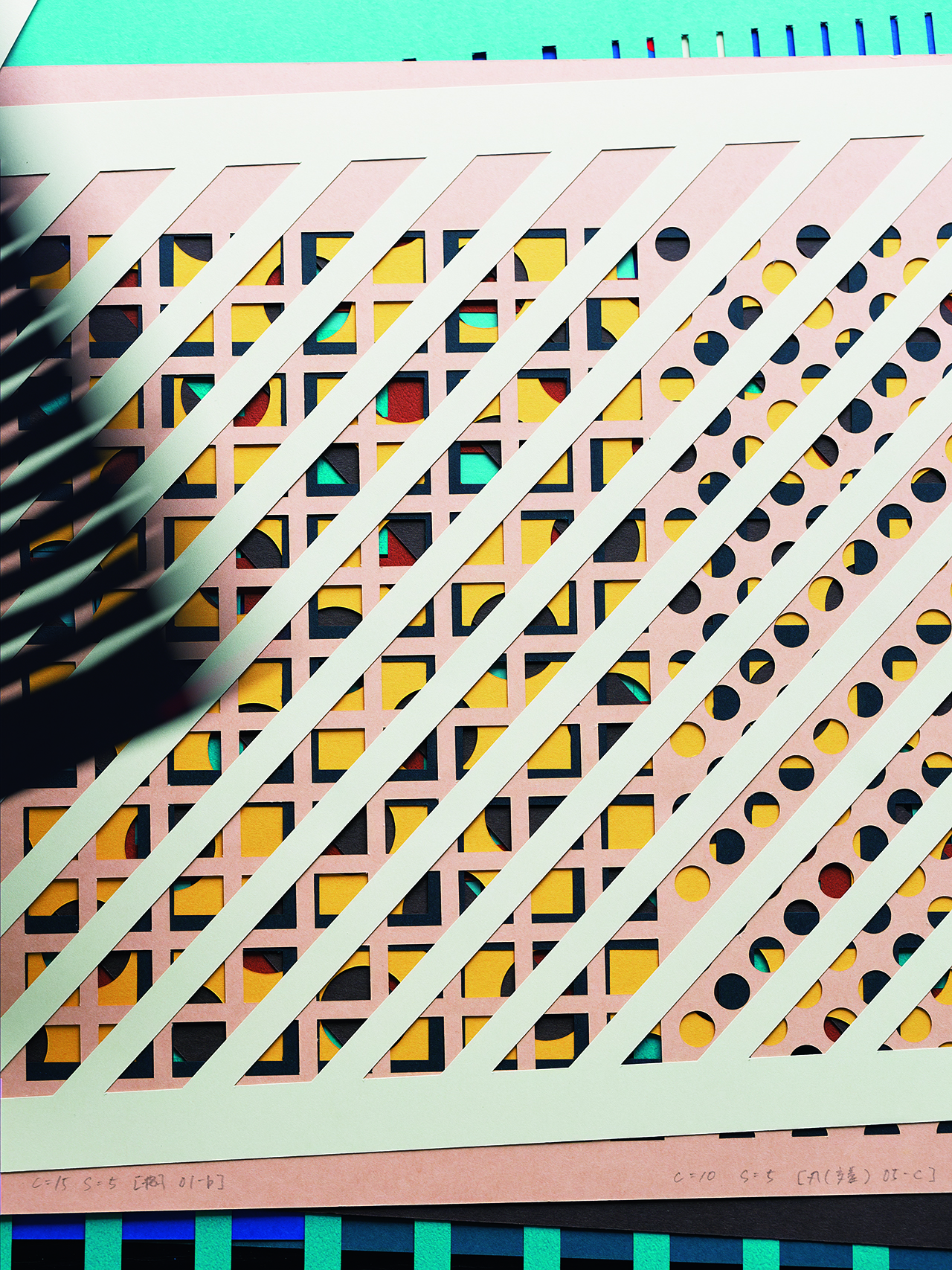 アイデアの発端は5年前に遡る。当時、別の仕事で一枚の紙から本体をくり抜いて組み立てるキットをつくっていたが、捨てるはずの残紙の束に目が奪われた。それは、単純な穴が重なっただけなのに、簡単には思いつくことのない図柄だった。しかも、束の中の1枚でも動かすと瞬時に異なる模様が現れる。ひょっとすると穴の空いた紙でしかできない表現かもしれないと、夢中になった。それは遠くなりかけていた記憶だったが、ふとした瞬間、頭の片隅からころんと転がって出てきた。