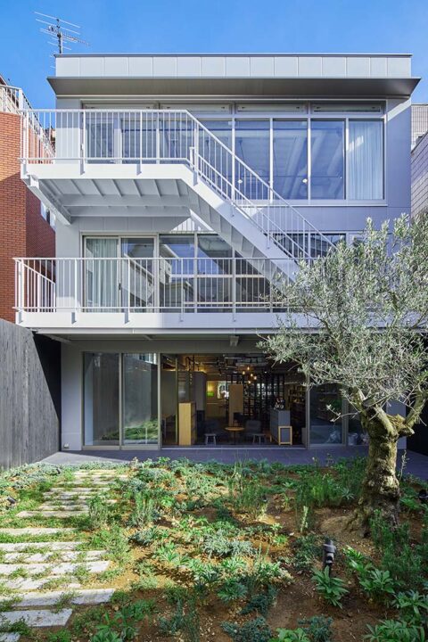 また、オフィス空間の設計事例が多くありますが、「いかにオフィスらしくないものにするか」という発想も強い気がします。例えば、私たちが働いているYOHAK DESIGN STUDIOのオフィス。オフィスって外とつながることがあまりないじゃないですか。ここでは外に一回出ないと上階に行けない動線をあえてつくったり、バルコニーのような場所を設けたり、植物がたくさん置かれていたり、外の空気に触れられる状態が随所に意識されています。
