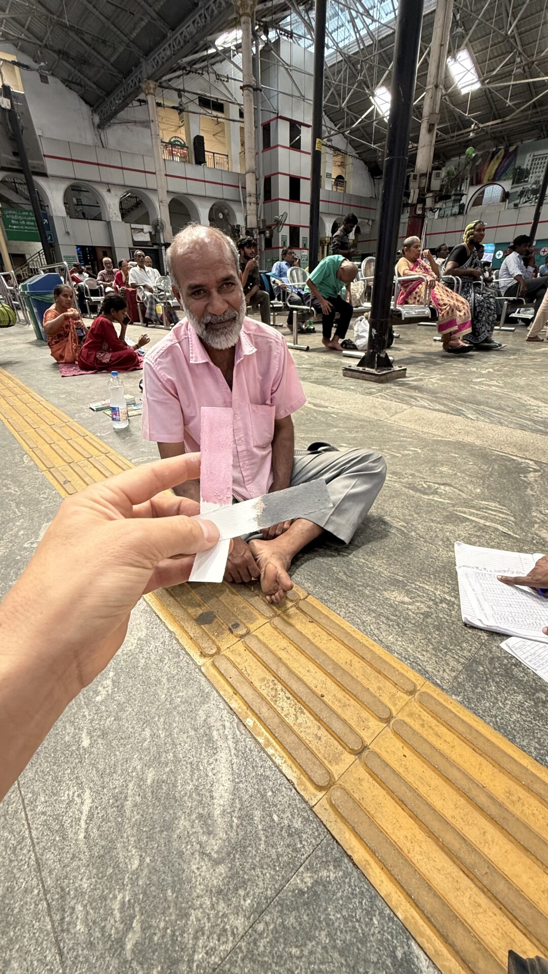 藤原は、テキスタイルを基点に制作を行う一方、風景や都市から色彩を採集し社会へ還元するプロジェクト「COLORHUNTING(カラーハンティング)」を長く続けている。近年は「人の中にしかない自然」をテーマに活動し、2024年秋からはサバティカル研究としてインドに渡り、約半年間にわたって人々の暮らしを色の観点から探求してきた。「花の色でも、花だけのときと、そこに人がいる状況で花の色を採取するのでは、同じ対象も全く異なる情報になる」と語るように、今回は対象のなかに人がいることを強く意識してリサーチを重ねたそうだ。