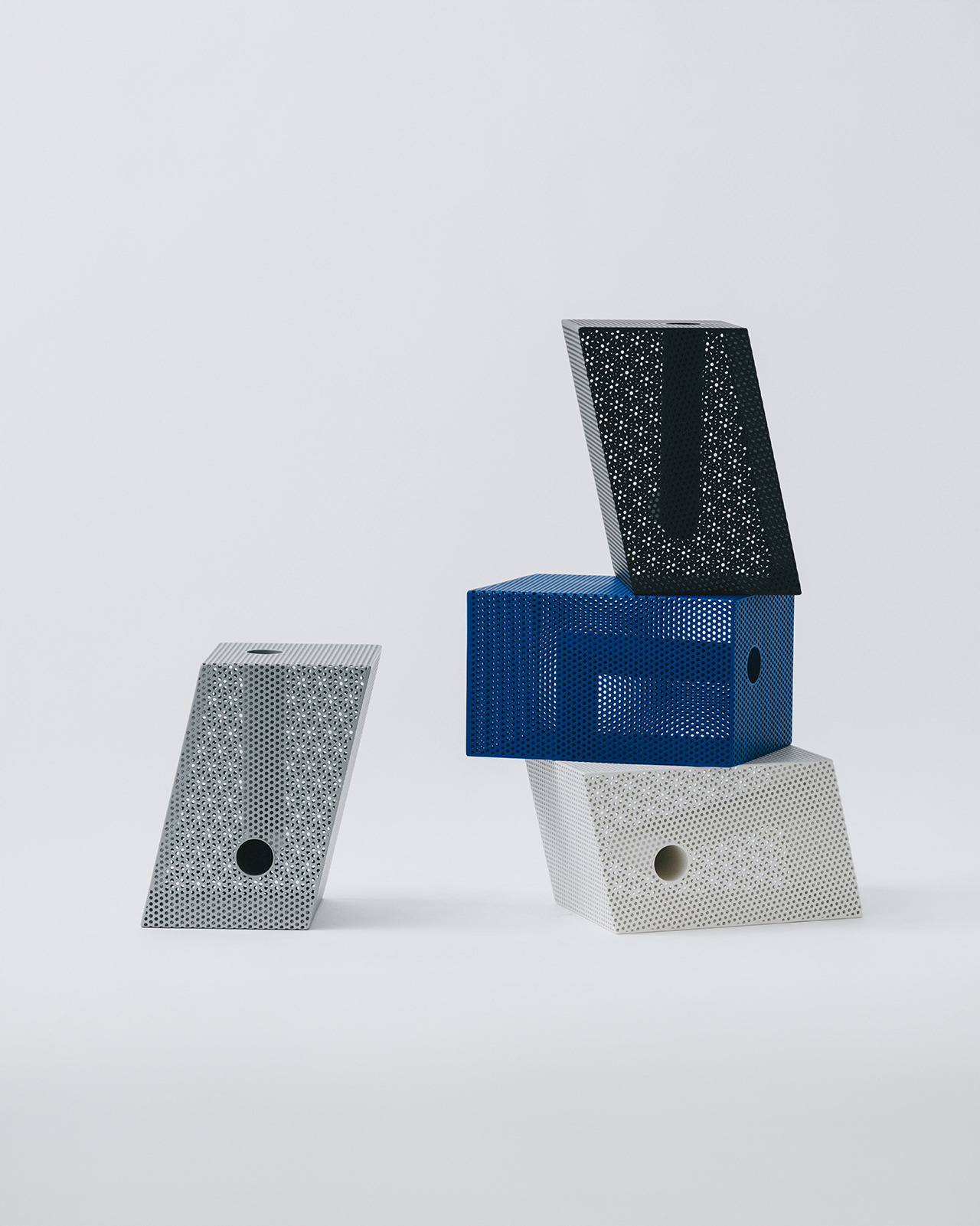 「Punching Block」。全4種類の形状に、それぞれSサイズとLサイズを展開し、カラーは4色(ブラック、ホワイト、ブルー、グレー)を用意する。
